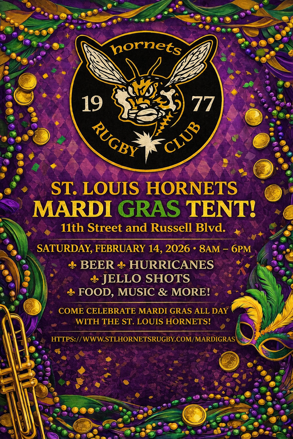 Hornets, please reach out to the Whatsapp group chat, Joey Dickerson, or Jim Crouch for volunteer signup sheet for the Mardi Gras tent.