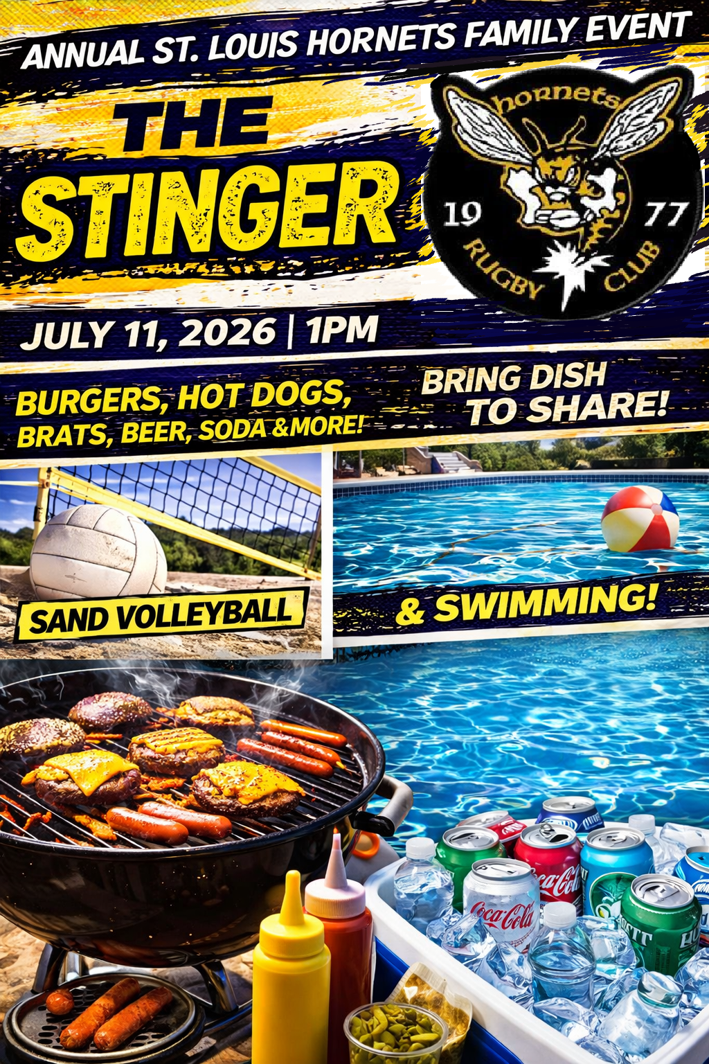 The Hornets Stinger will be July 11th starting at 1pm till 9pm at the same location we have had the Stinger at the past few years. This is a family friendly event! Burgers, brats, hot dogs, beer, water, soda, etc. will be provided. Please bring a side dish to share with others.
